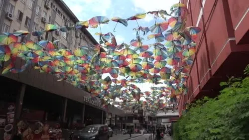 Adana Kuruköprü'de renkli şemsiyeler fırtınada hasar gördü, sokak viraneye döndü