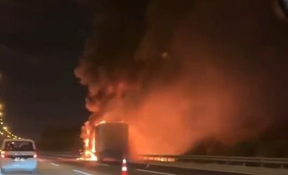 Adana'da, Adana-Mersin Otoyolu Sarıçam mevkiinde seyir halindeki bir tırda henüz belirlenemeyen bir nedenle yangın çıktı.
