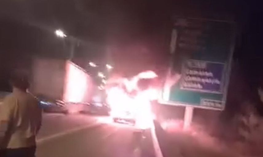 Aracın alevlere teslim olduğu anlar, cep telefonu kamerasıyla anbean görüntülendi. Sürücünün aracı güvenlik şeridine çekip yetkilileri bilgilendirmesi, olayın kontrol altına alınmasında belirleyici oldu.