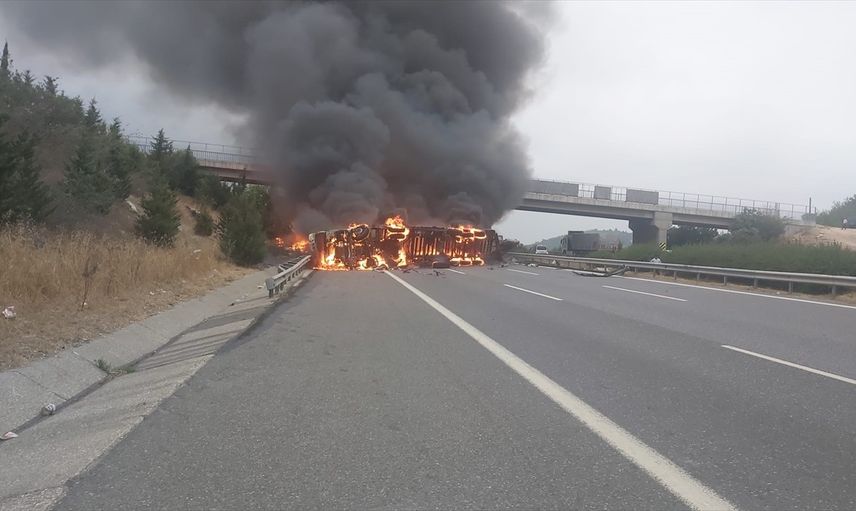 Yangın nedeniyle bir süre ulaşıma kapanan yol, yapılan çalışmalar sonrasında yeniden açıldı. Tır sürücüsünün sağlık durumunun iyi olduğu öğrenildi.