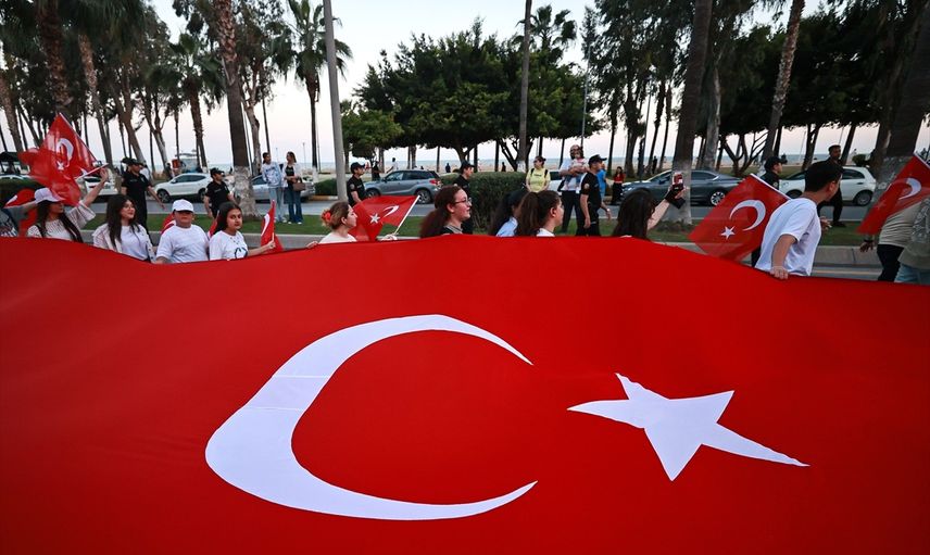 Mersin'de, 19 Mayıs Atatürk'ü Anma, Gençlik ve Spor Bayramı etkinlikleri kapsamında 100 metre uzunluğundaki Türk bayrağıyla yürüyüş gerçekleştirildi.
