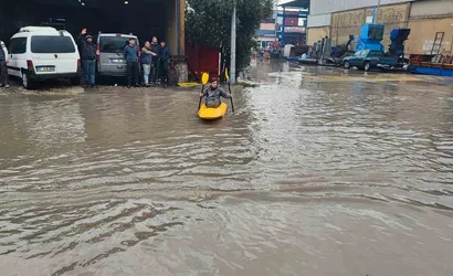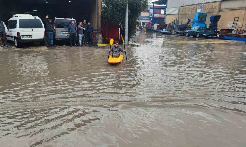 Fiber glas imalathanesinde çalışan Baran Dudukanlı, iş yerinin önünün her yağmurda göle döndüğünü belirterek bu durumu fırsata çevirdi. İmalathanede ürettikleri kanoyla sokağa çıkan Dudukanlı, araçların yol vermesiyle birlikte sokakta kano kullanma pratiği yaptı.