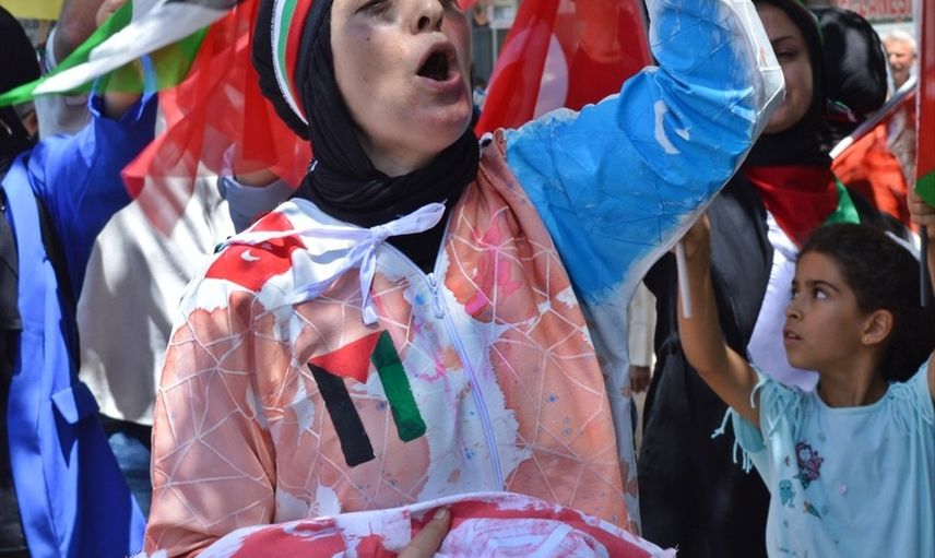 İsrail aleyhine sloganların atıldığı gösteri, edilen duanın ardından sona erdi.