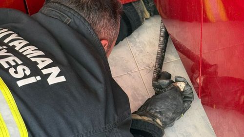 Adıyaman'da Tekpınar köyündeki bir evin mutfağına giren yaklaşık 1,5 metrelik yılan, itfaiye ekibi tarafından yakalandı ve doğaya salındı.