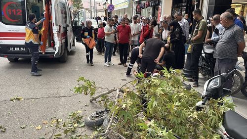 Adıyaman'da rüzgarın düşürdüğü ağaç dalı, motosiklet sürücüsünü yaraladı. Olay anı güvenlik kameralarına yansıdı.