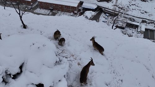 Adıyaman'da yiyecek arayan yaban keçileri, yoğun kar yağışı sonrası dronla görüntülendi ve yerleşim merkezlerine kadar indi.