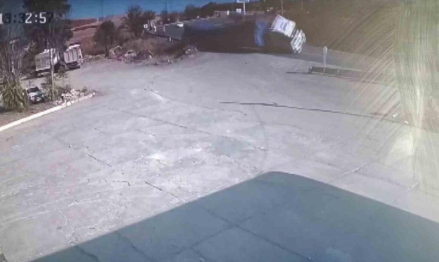Adıyaman istikametinden Gölbaşı istikametine doğru seyir halinde olan Halil Agat yönetimindeki 33 BLM 29 plakalı tır, sürücünün direksiyon hakimiyetini kaybetmesi sonucu virajda yan yattı. Kazaya ilişkin görüntüler güvenlik kameralarına yansıdı.