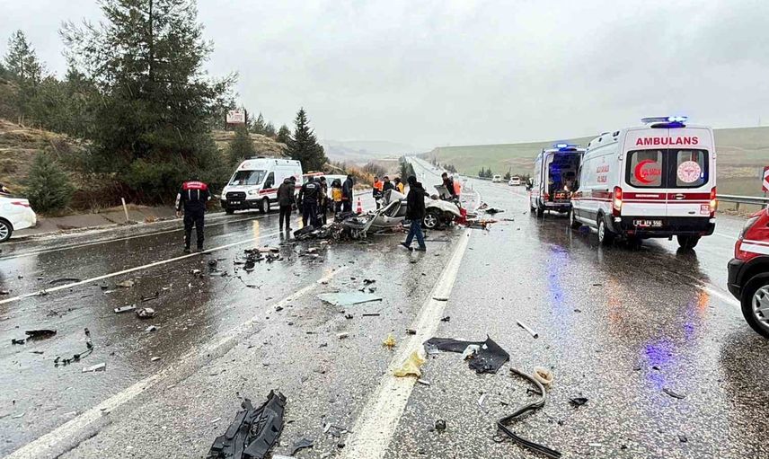 ADIYAMAN'DA YOLCU OTOBÜSÜ İLE OTOMOBİLİN ÇARPIŞMASI SONUCU MEYDANA GELEN FECİ KAZADA 3 KİŞİ HAYATINI KAYBEDERKEN, 1 KİŞİ İSE YARALANDI.