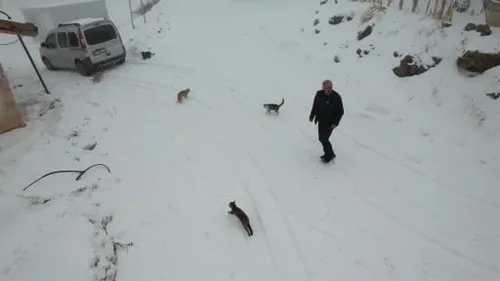 Adıyaman merkeze bağlı Sarıkaya köyünde yaz nüfusu 2 bine yaklaşırken kışın sadece muhtar Ali Rıza Bildik ile ailesi köyde kalıyor; muhtar sokak hayvanlarını besliyor.