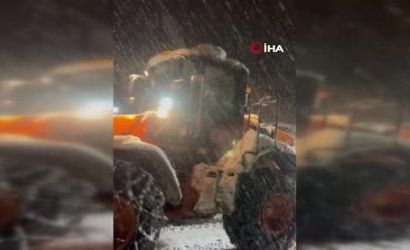 Adıyaman Sincik'e kar nedeniyle sıkışan CNG tırı iş makineleriyle ilçeye ulaştırıldı