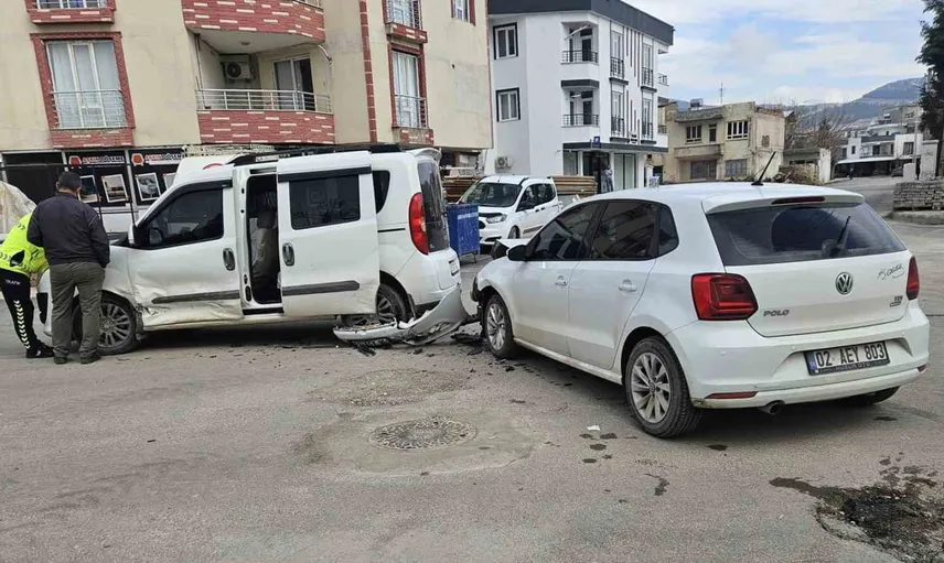 Edinilen bilgilere göre, Fatma E. idaresindeki 02 AEY 803 plakalı otomobil ile Ali E. idaresindeki O2 ADF 134 plakalı hafif ticari araç çarpıştı.