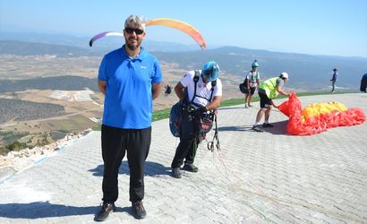 Bilecik Valiliği koordinasyonunda düzenlenen "Take Off Bilecik" yamaç paraşütü etkinliğine katılan Servet Yalçınkaya, paraşütüyle 4,5 saatlik uçuşla 136 kilometre mesafe katederek Kütahya'nın Çavdarhisar ilçesine uçtu.