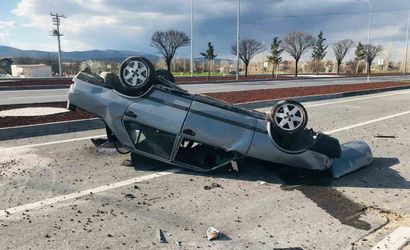Çarpışmanın etkisiyle kontrolden çıkan A.A.'nın kullandığı araç takla attı ve yaklaşık 150 metre sürüklendikten sonra yol kenarındaki kaldırıma çarparak durdu.
