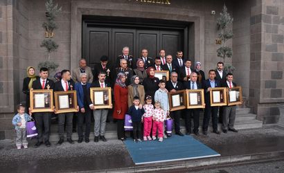 Afyonkarahisar'da Valilik Toplantı Salonu'ndaki törende, 2 şehit ailesi ile 7 gaziye Devlet Övünç Madalyası ve Beratı verildi.