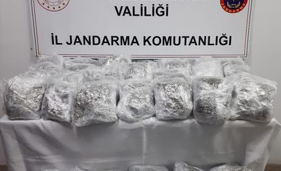 Edinilen bilgilere göre, ekipler alınan ihbarı takibe aldıktan sonra aracı karayolunda durdurdu. Dron destekli yürütülen arama kapsamında, durdurulan aracın bagajında bulunan iki valiz içinde 35 adet poşet içerisinde toplam 16 kilo 903 gram skunk bulundu.