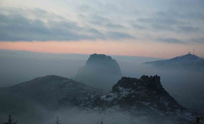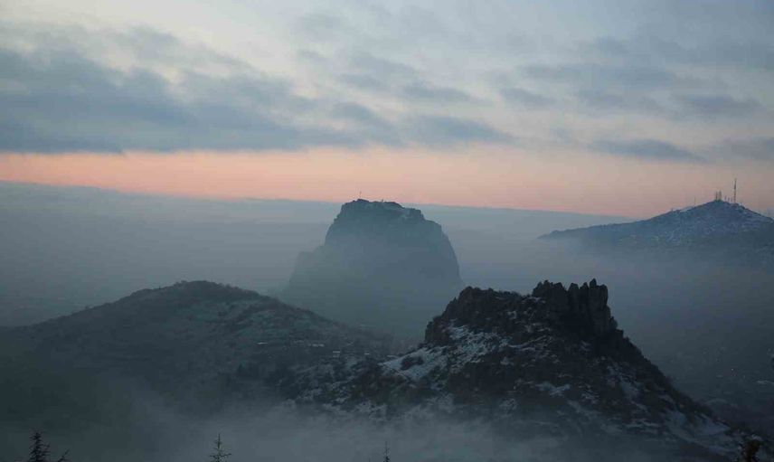 Afyonkarahisar'da Karahisar Kalesi'nin Sis Altındaki Gün Doğumu Görüntüleri