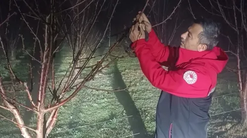 Afyonkarahisar'da kiraz bahçelerinde zirai dona karşı gece nöbeti