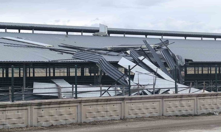 Afyonkarahisar'da kuvvetli rüzgâr bazı işyeri çatılarında hasara yol açtı