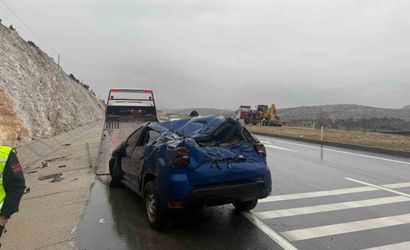 Afyonkarahisar'da refüje devrilen otomobil hurdaya döndü