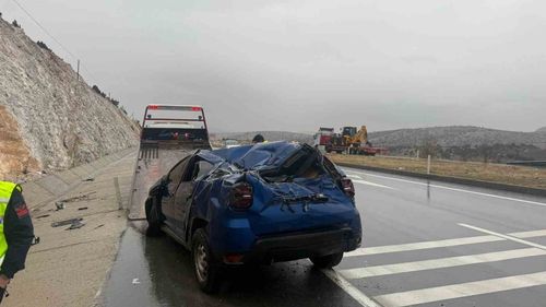 Afyonkarahisar'da Refüje Devrilen Otomobil Hurdaya Döndü; Sürücü Yaralı