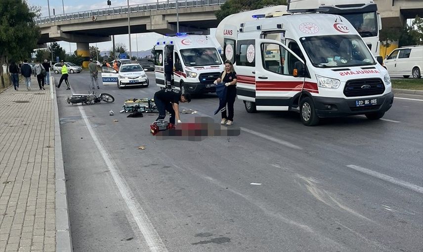 Afyonkarahisar merkez Konya köprülü kavşakta meydana gelen kazada, Ü.K. idaresindeki 43 AFP 883 plakalı tır, kavşakta seyir halindeki O.S.E.'nin kullandığı 03 ADL 504 plakalı motosiklete çarptı.