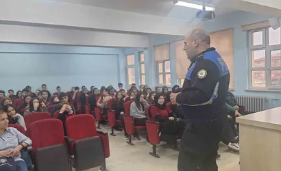 Afyonkarahisar'da polis tarafından Osmangazi Anadolu Lisesi'nde gerçekleştirilen eğitim çalışmasında lise öğrencilerine meslek tanıtımı yapıldı ve çeşitli güvenlik konularında bilgilendirme sağlandı.