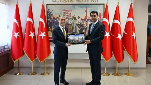 Afyonkarahisar Valisi Naci Aktaş, Uşak Valisi Serdar Kartal’ı valilik makamında ziyaret ederek hayırlı olsun dileklerini iletti ve iş birliğini görüştü.