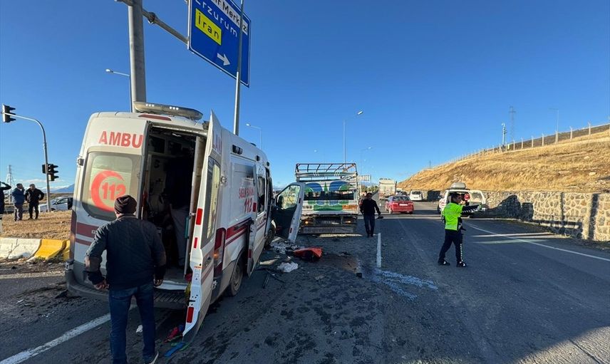 Ağrı'da ambulans ile kamyonetin çarpışması sonucu 2'si ağır 7 kişi yaralandı.