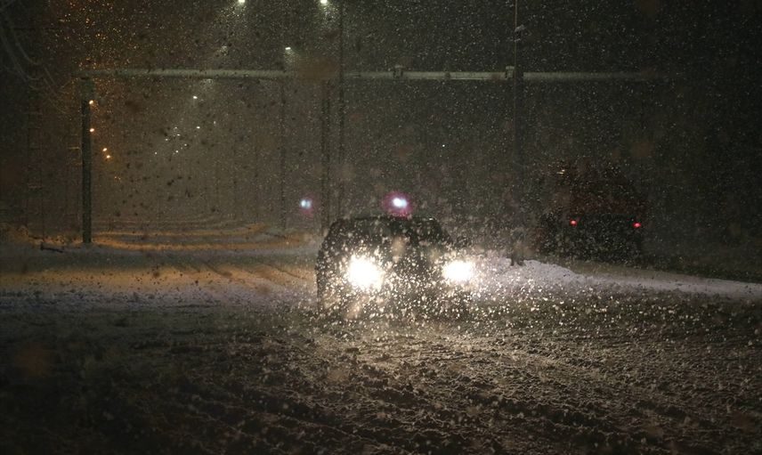 Yağan kar, sokak lambalarının ışıkları altında etkileyici görüntüler oluşturdu, bu da bölgedeki kış manzarasını daha da güzel hale getirdi.