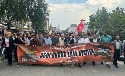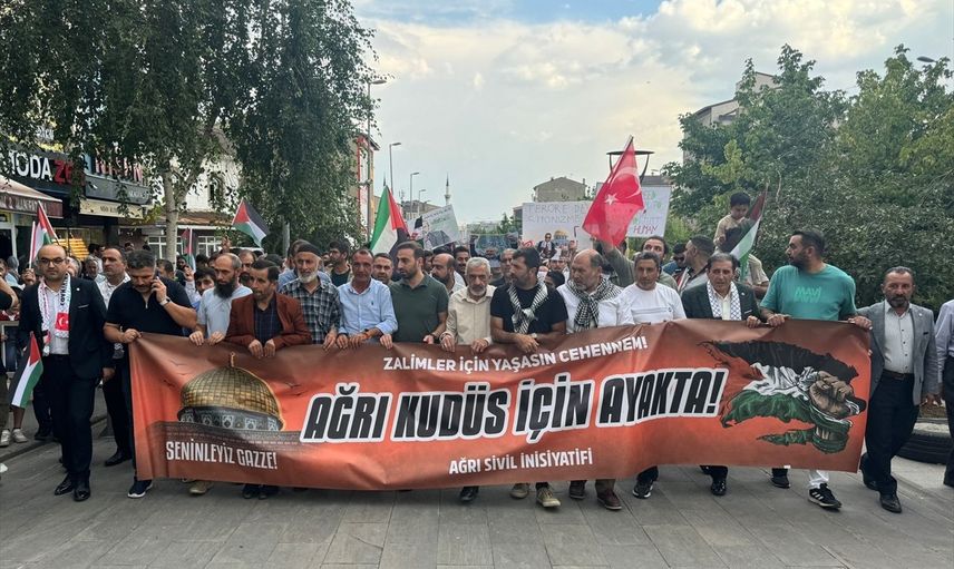 Ağrı'da sivil toplum kuruluşu temsilcileri ve vatandaşlar, Hamas Siyasi Büro Başkanı İsmail Heniyye'nin İran'da suikasta uğraması ve İsrail'in Gazze'ye yönelik saldırılarını protesto edildi.