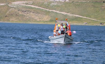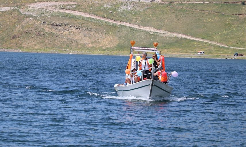 1. Uluslararası Ağrı Dağı Kadın Kamp Festivali'ne katılan 200 kadın, doğa harikası Balık Gölü'nü tekneyle keşfedip bölgenin doğal güzelliklerini gezdi.