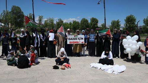 Ağrı'da kadınlar, İsrail'in Gazze'deki saldırılarına karşı balon uçurarak tepkilerini dile getirdi.