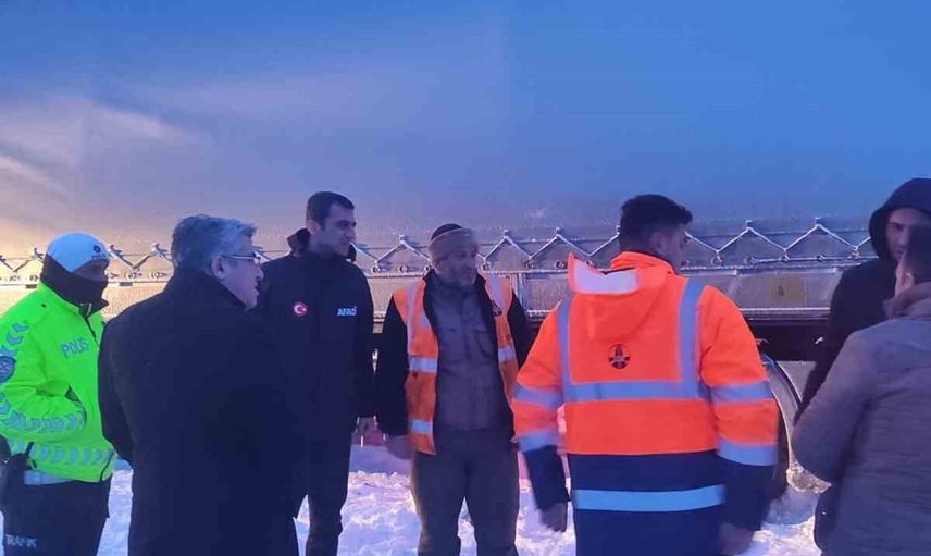 Hamur ilçesinde, Hamur-Ağrı karayolu üzerinde bir tırın yoğun kar yağışı ve fırtına nedeniyle yolda mahsur kaldığı ihbarı alındı. Sürücüyle yapılan görüşmede herhangi bir tahliye talebinin bulunmadığı öğrenildi. Bu nedenle AFAD İl Müdürlüğünce 1 şube müdürü, 3 arama ve kurtarma personeli ile 1 araç bölgeye sevk edildi; Karayolları ve Bölge Trafik ekipleri de çalışmalara dahil edildi. Olay yakından takip ediliyor.