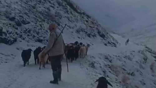 Ağrı'nın Eleşkirt ve Taşlıçay ilçelerinde etkili kar ve tipi nedeniyle kapanan köy yolları açıldı; Gündoğdu'da küçükbaş sürüsü tipiden korunarak geri getirildi.