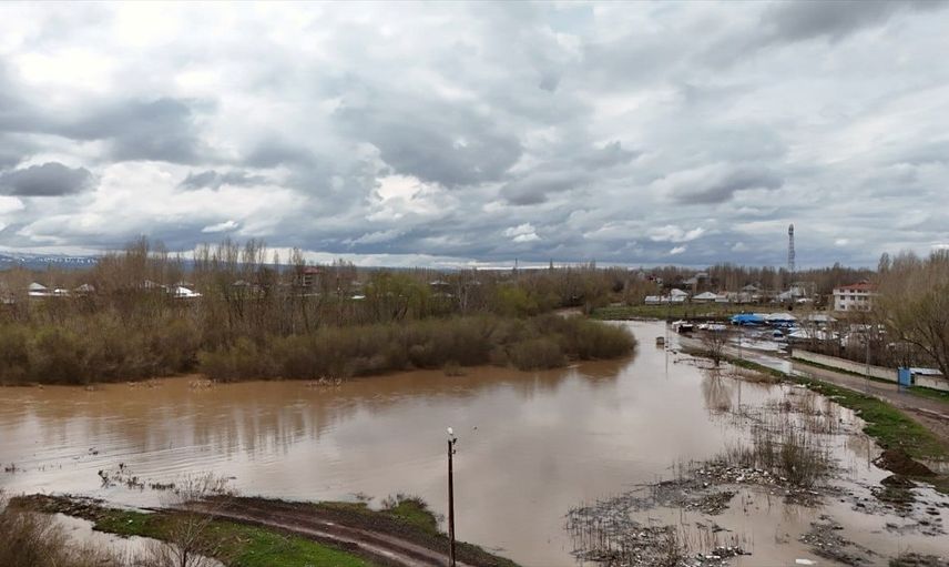 Ağrı'da etkili olan sağanak nedeniyle Badişan Deresi'nin taşması sonucu bazı evler ve tarım arazileri sularla kaplandı.
