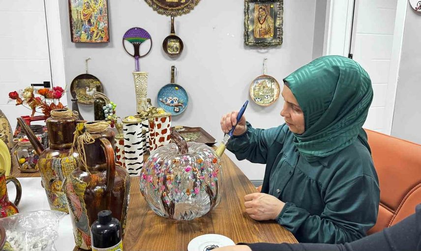 Halk Eğitim Merkezi bünyesinde açılan sıfır atık kursunda, atıl durumdaki şemsiye, tepsi, bardak, tabak, tencere ve çaydanlık gibi ürünler el emeğiyle süslenerek yeniden değerlendiriliyor. Kursu yürüten 52 yaşındaki usta öğretici Sultan Solmaz, 28 yıllık öğretmenlik deneyimiyle el sanatları ve geri dönüşüm çalışmalarına liderlik ediyor.