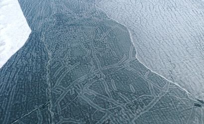 Ağrı'da kış aylarında düşük sıcaklıklar nedeniyle buzla kaplanan Yazıcı Barajı'nın yüzeyi, havaların ısınmasıyla çözülmeye başladı.