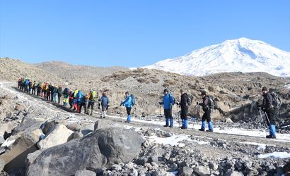5,137 metre yüksekliğiyle yurdun zirvesi olan Ağrı Dağı'na, kış faaliyetleri kapsamında Türkiye Dağcılık Federasyonu tarafından bir zirve tırmanış programı gerçekleştirildi. Bu kapsamda, Doğubayazıt ilçesine gelen 31 dağcı ve 3 rehber, perşembe sabahı saatlerinde zorlu zirve tırmanışına başladı.