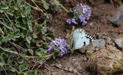 Yüksek rakımda yaşam sürmesi nedeniyle "dorukların benekli meleği" olarak isimlendirilen benekli kelebek, Türkiye'nin en yüksek noktası olan Ağrı Dağı'nın 4 bin 200 rakımında AA ekibince kayıt altına alındı.