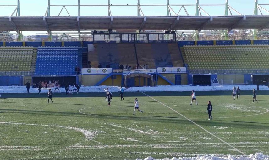 TÜRKİYE FUTBOL FEDERASYONU (TFF) KADINLAR 2. LİGİ'NDE MÜCADELE EDEN AĞRI KADIN FUTBOL TAKIMI, YOĞUN KAR YAĞIŞI VE DONDURUCU SOĞUKLARA RAĞMEN SAHASINDA KAHRAMANMARAŞ ANADOLU SPOR KADIN FUTBOL TAKIMI'NI 4-1 MAĞLUP ETTİ.