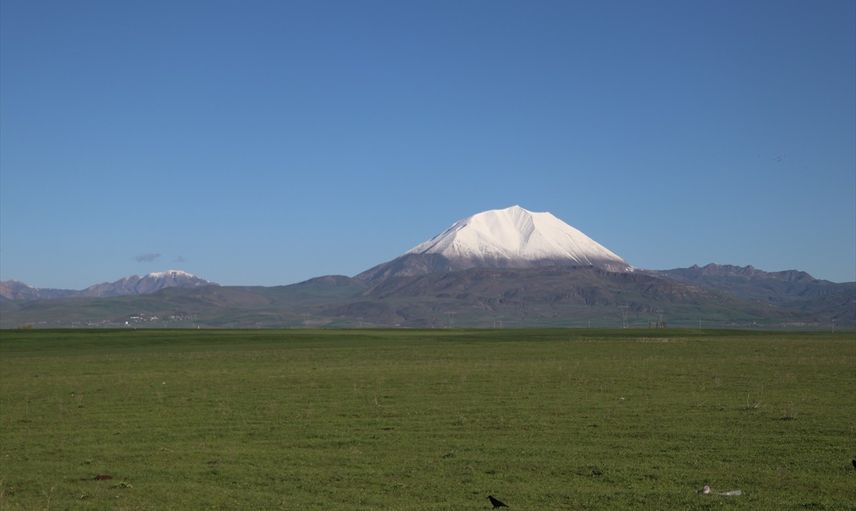 Ağrı'nın Eleşkirt ilçesinde bulunan Kösedağ'ın zirvesi baharda beyaza büründü.