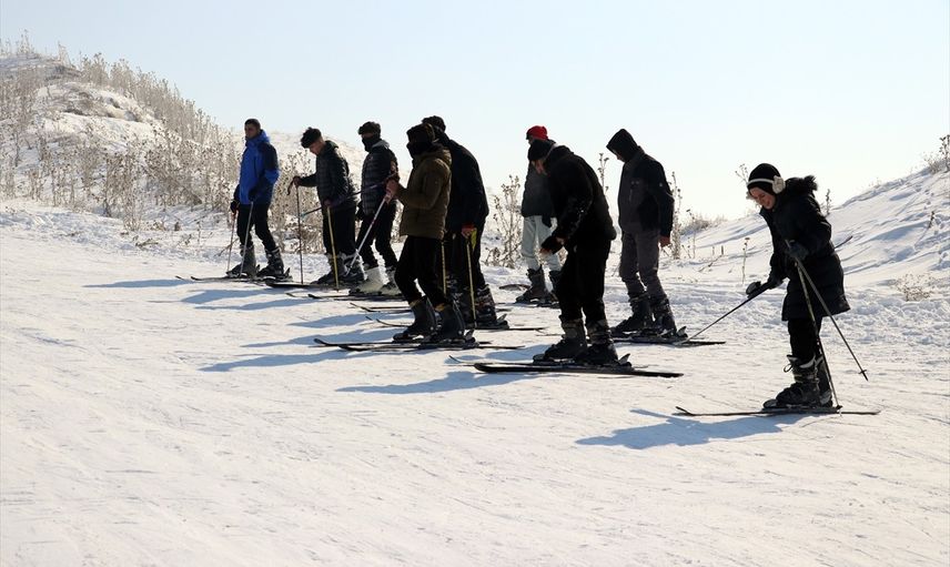 Ağrı Spor Lisesi'nde düzenlenen "Okul Her Yerdedir" projesi kapsamında öğrenciler, kayak derslerini uygulamalı olarak kentteki Küpkıran Kayak Merkezi'nde alıyor.
