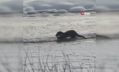 Ağrı Taşlıçay'da Murat Nehri'nde İki Su Samuru Görüntülendi
