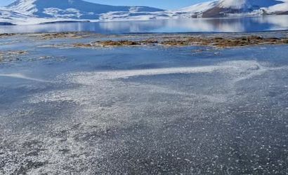 Taşlıçay Balık Gölü kısmen buz tuttu