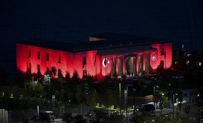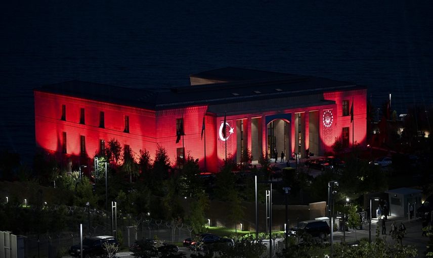 Cumhurbaşkanlığı Kabine Toplantısı'nın ilk kez düzenlendiği Ahlat Cumhurbaşkanlığı Külliyesi'ne, Türk bayrağı ve Cumhurbaşkanlığı forsunun yer aldığı ışıklandırma yapıldı.