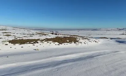 Bitlis'in Ahlat ilçesinde, kış mevsiminin uzun ve çetin geçtiği bölgelerde yaban hayvanlarının yiyecek bulmakta güçlük çektiği gözlemlendi. Ovakışla Beldesi ile Dilburnu Köyü yolu üzerinde dronla görüntü alan içerik üreticisi Ercan Baş tarafından kaydedilen görüntülerde, karla kaplı arazide yiyecek arayan bir tilki yer alıyor.