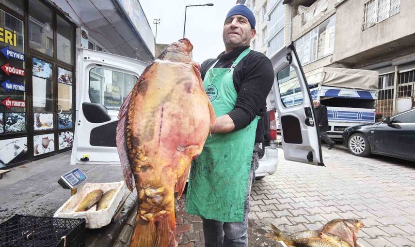 Ahlat’ta Keban Baraj Gölü’nden getirilen dev sazanlar rağbet görüyor
