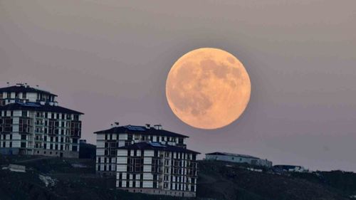 Bitlis'in Ahlat ilçesinde yükselen "Kunduz Süper Ay", Van Gölü'ndeki yansımaları ve iskeleden çekilen görüntülerle görsel şölen sundu.