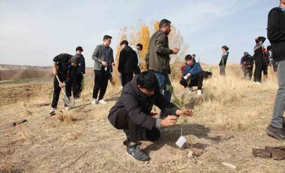 Ahlat'ta 'Maziden Atiye Ahlat' programı kapsamında öğrenciler 11 Kasım'da fidan dikti
