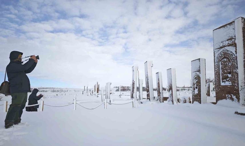 Bitlis'in Ahlat ilçesindeki tarihi yapıların karla bütünleşmesi, bölgeye kartpostallık görünümler kazandırdı. Kar yağışıyla beyaz örtüye bürünen mekanlar, özellikle kış fotoğrafçıları ve ziyaretçiler için çekim alanına dönüştü.